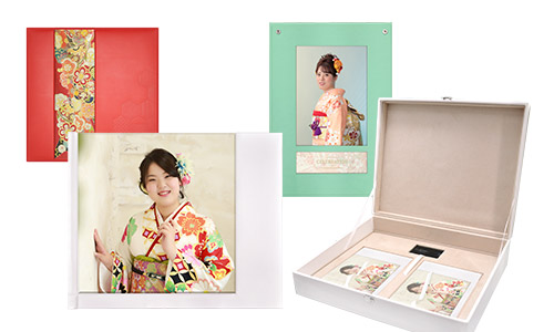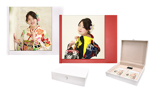 「グロリアス」は「輝かしい」「荘厳な」という意味です。成人式・婚礼など一生に一度の記念日にぜひご利用ください。すべて高級化粧箱にお入れしてお届けする特別なアルバムです。